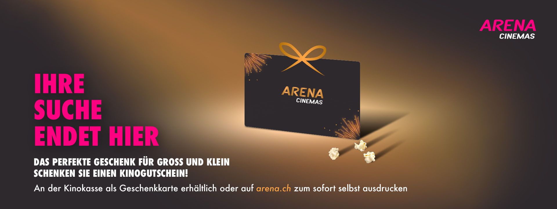 • Mit der Geschenkkarte in allen Arena Cinemas Standorten und online bezahlen.